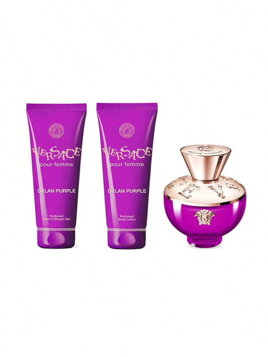 Versace Dylan Purple Mini Set for Women - Sweet Floral Perfume, Shower Gel, and Body Lotion Travel Essentials - Perfect Gift for Any Occasion