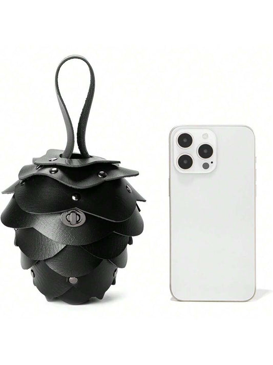 Retro Strawberry & Pine Cone Shaped Leather Coin Purse - Lightweight Gothic Waist Bag Organizer