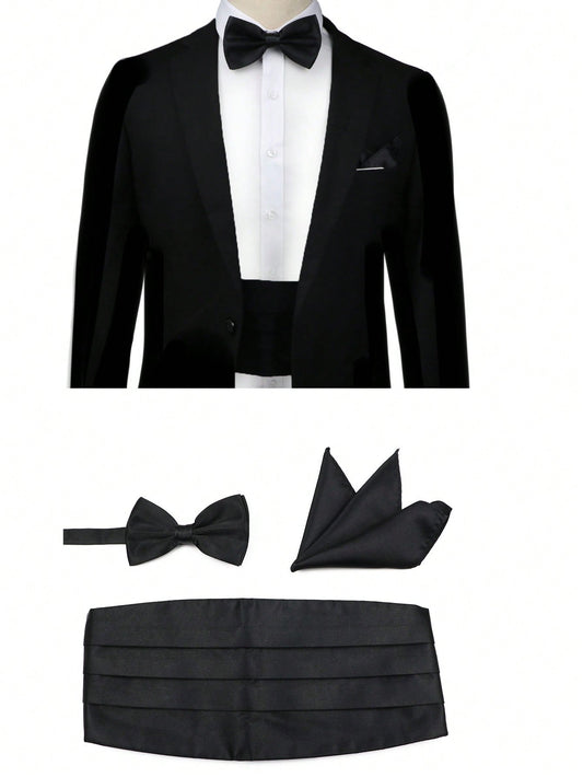 Elegant 3-Piece Men's Cummerbund Bow Tie and Pocket Square Set for Tuxedos, Weddings, and Formal Events