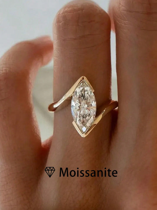 Elegant Moissanite Teardrop Ring in 925 Sterling Silver - Vintage-Inspired High-Quality Jewelry for Weddings and Special Occasions