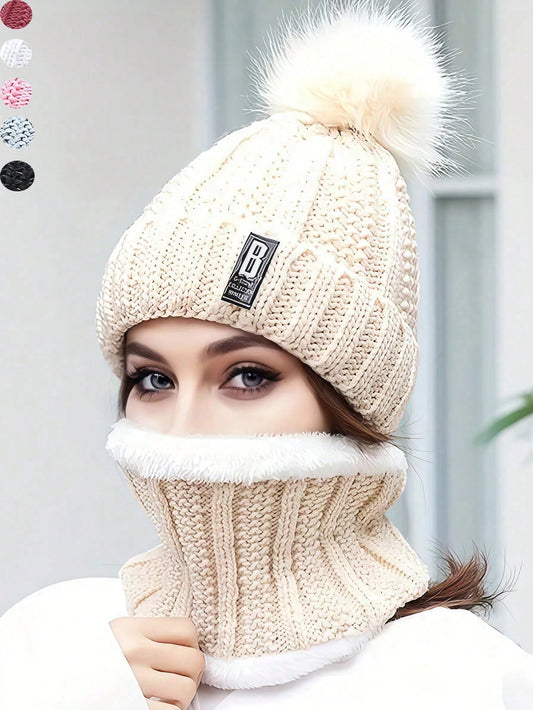 Cozy 2-Piece Winter Beret Hat and Pom-Pom Fleece-Lined Neck Warmer Set for Women – Perfect for Holiday Style