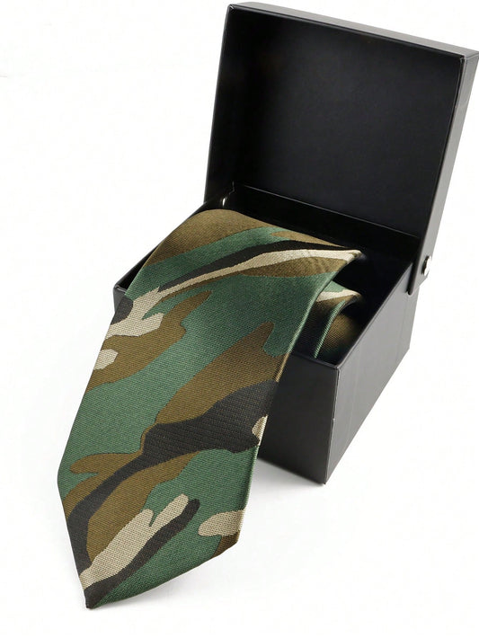 Men's Green Camouflage Jacquard Tie - Perfect for Cosplay and Party Events