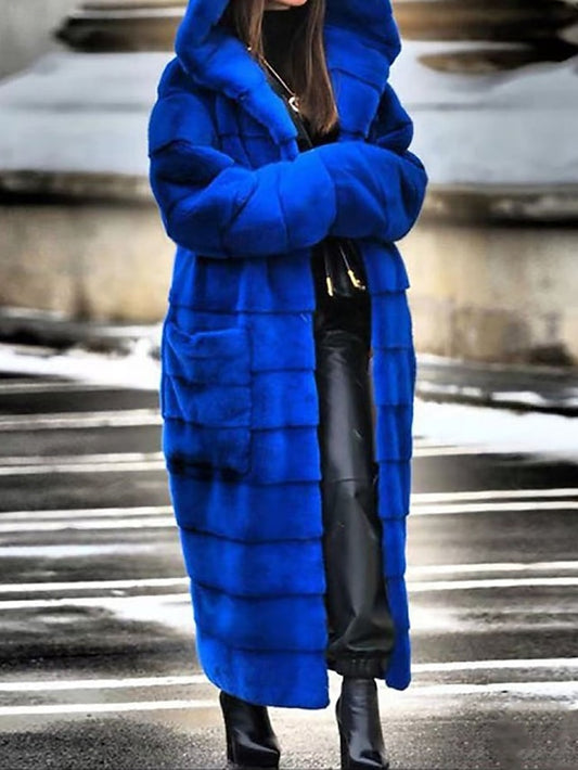 Cozy Chic: Women's Long Hooded Faux Fur Winter Coat for Casual Street Style