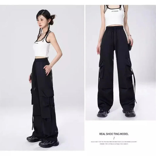 Streetwear Side Split Zipper Loose Casual Straight Parachute Long Trousers