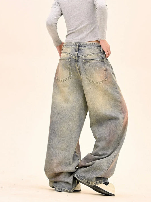 American Fashion Tie-Dye Graffiti Straight Leg Wide Jeans Straight Leg Loose Jeans Hip-hop Street Baggy Jeans
