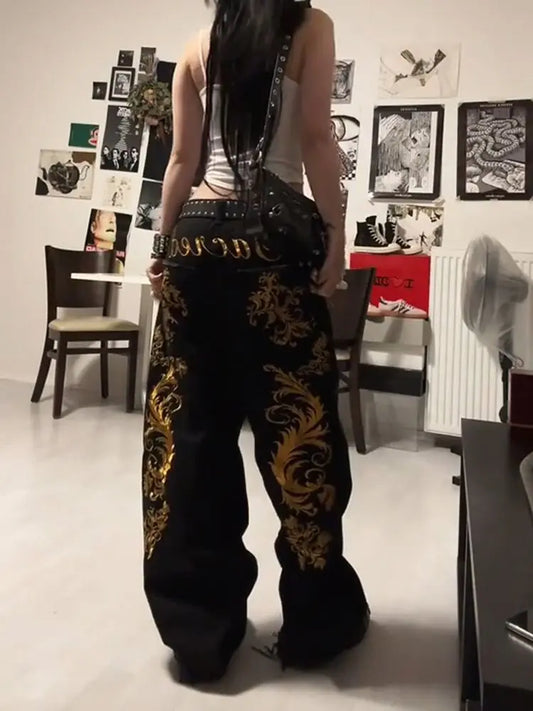 Dragon Print Straight Jeans Harajuku Hip Hop Y2k Pants Baggy Jeans