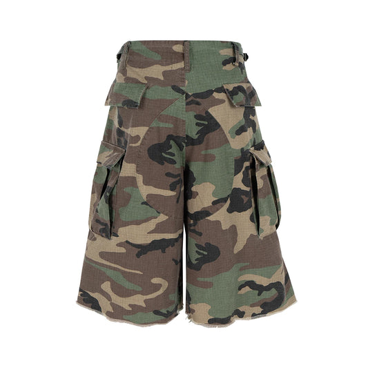 Silhouette Camouflage Cargo Cropped Shorts for Men Wide Leg Patchwork Baggy Over Knee Pants