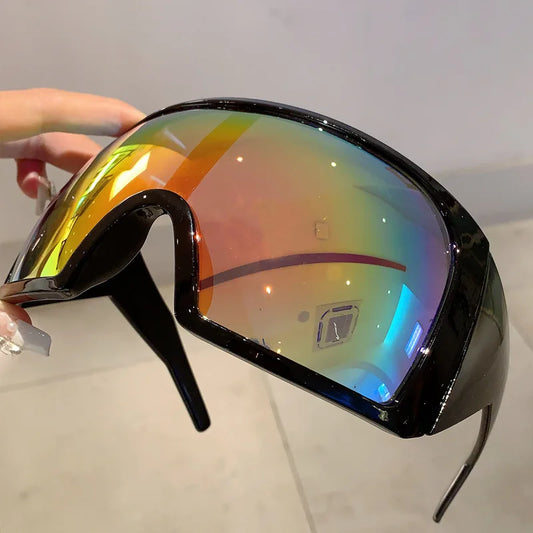 Oversized Wrap Sunglasses Unisex Vintage Flat Top Luxury Brand Designer Steampunk Shade