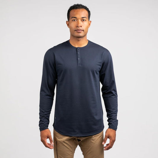 BYLT Men's Navy Drop Cut Henley Sleeve Shirt - Stylish, Comfortable & Versatile Design for Every Occasion