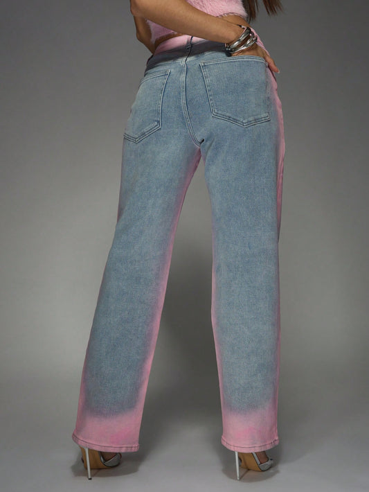 Women's Casual Gradient Straight Leg Jeans - Trendy Street Style with Letter Print