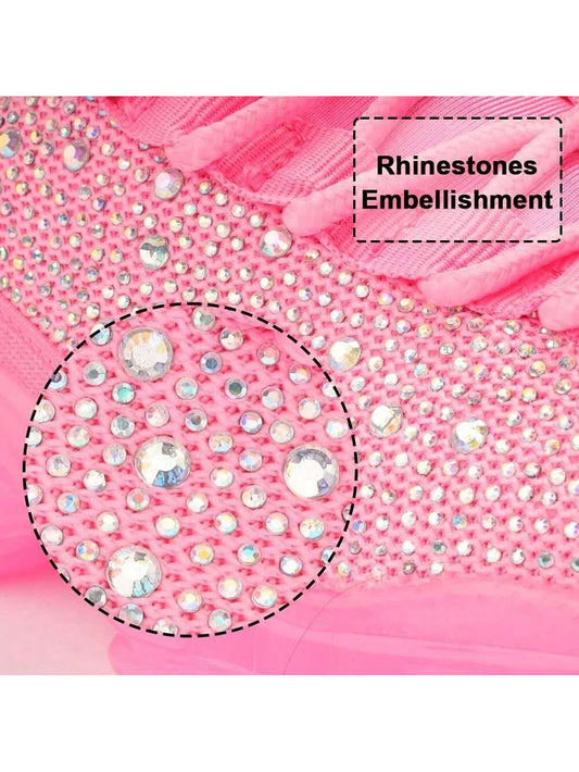 Trendy Pink Rhinestone Mesh Slip-On Sneakers for Women - Breathable Glitter Walking Shoes