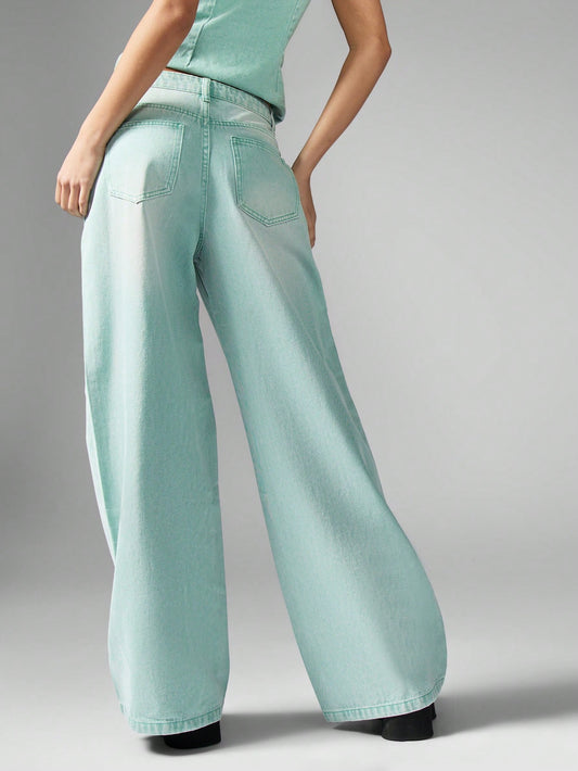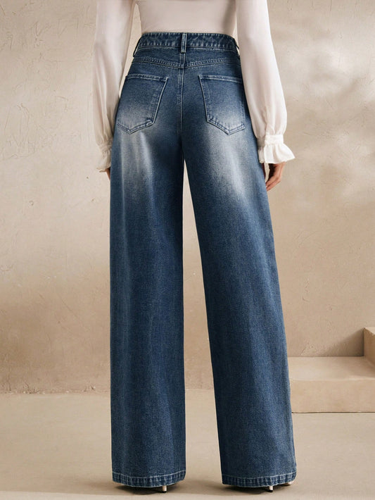 Trendy Washed Denim Wide Leg Jeans for Effortless Style