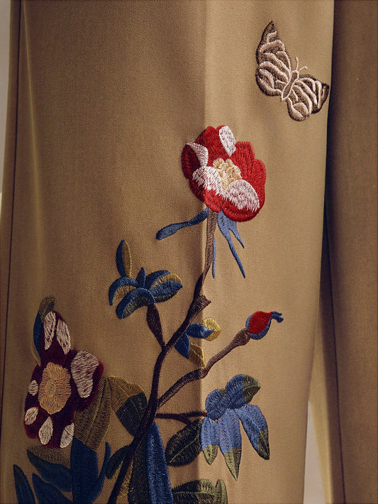 Elegant Floral Embroidered Long Pants for Women – Perfect Vacation Style