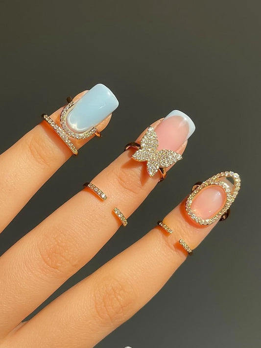Creative 3pcs Zinc Alloy Micro-Inlaid Nail Cover Ring Set for Unique Style