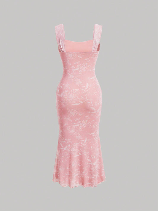 Pastel Dream: Ruched Bust Mermaid Hem Floral Cami Dress