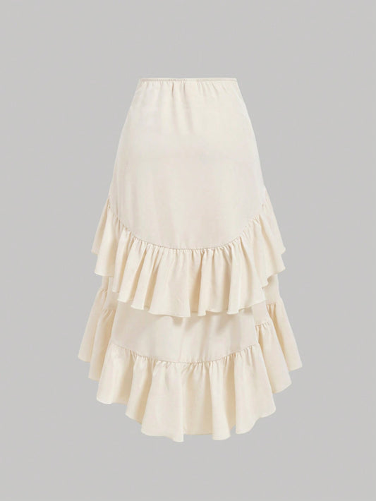 Chic Creamy Apricot High-Low Ruffled Summer Skirt