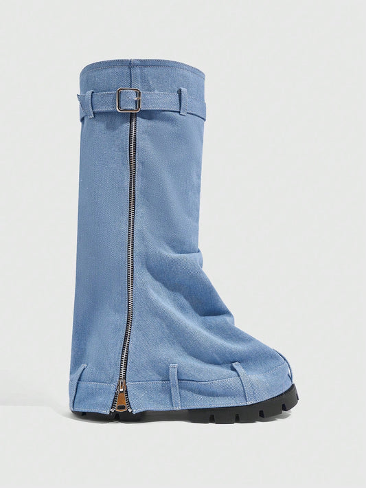 Elevate Your Style Thick-Soled Wedge Heel Western Riding Boots