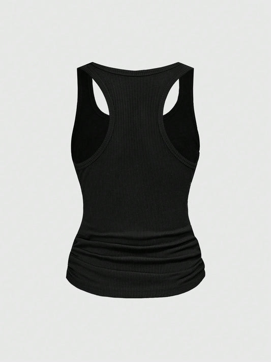 Grunge Punk Sleeveless Black Tank Top with Studded Rhinestones
