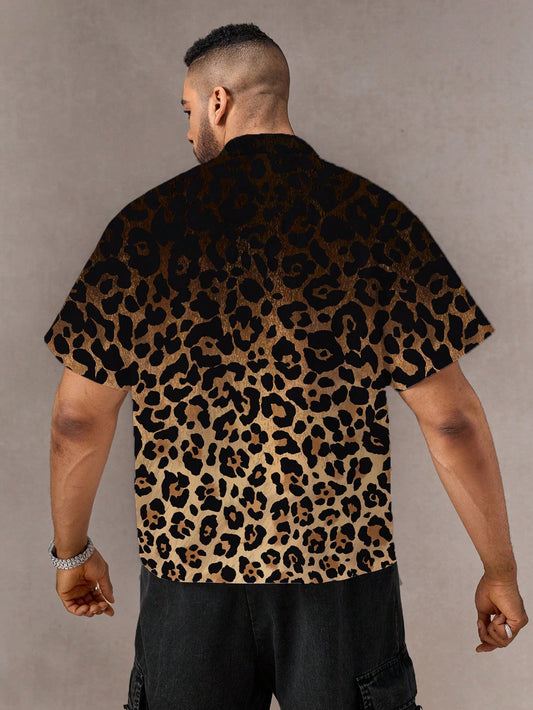 Stylish Plus-Size Men's Leopard Ombre Print Short Sleeve Shirt