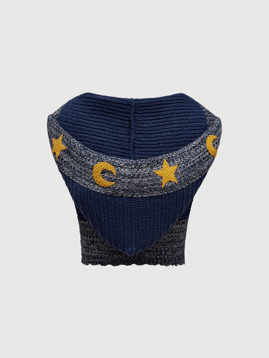 Boho Chic Sleeveless Hoodie with Celestial Moon and Stars Print