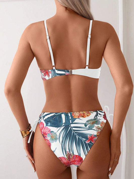 Floral Charm Underwire Push-Up High-Waisted Bikini Set - Perfect for Summer Fun!