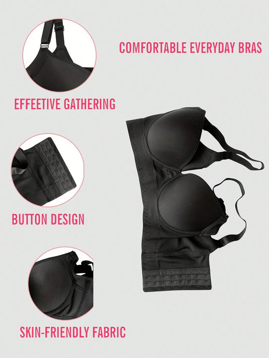 Luxurious Comfort: Women's Seamless Deep V Push-Up Bra with Adjustable Support