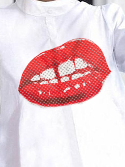 Chic Contrast Color Printed Long Sleeve Split Side T-Shirt