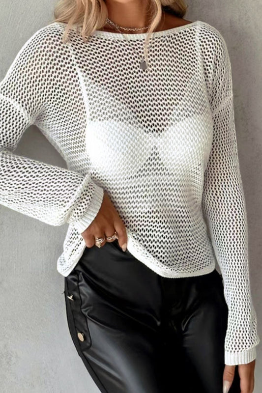Contrast Trim Off-Shoulder Long Sleeve Maxi Sweater Dress