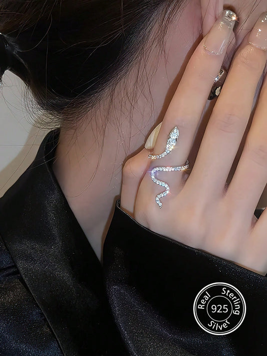 S925 Sterling Silver Adjustable Snake Design Ring - Unique Luxury Gift for Women