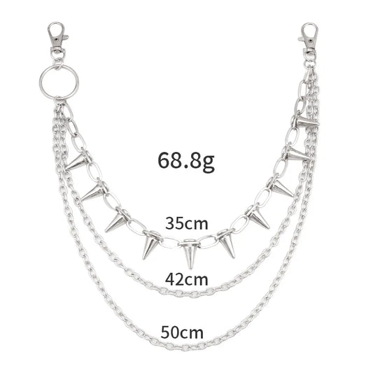 Punk Spike Rivet Layered Metal Chain Keychains For Men Women Pants Jeans Biker Gothic Rock