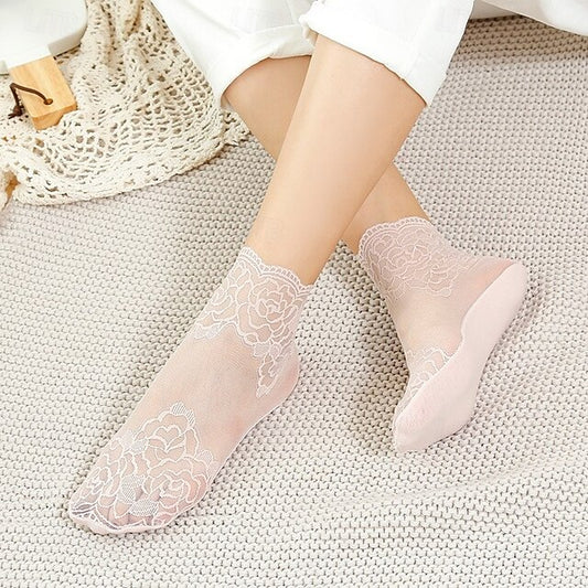 Chic Comfort: Breathable Solid Color Lace Socks for Effortless Style