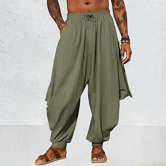 Men's Breathable Linen Harem Pants - Casual Summer Trousers with Drawstring Waist