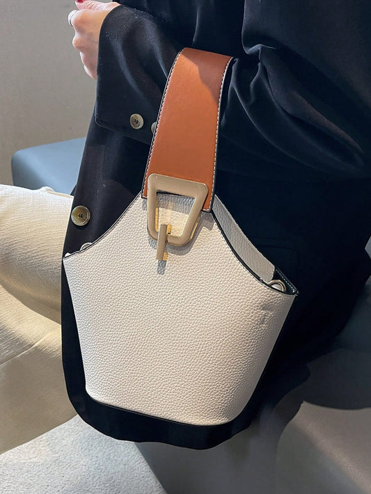 Chic Contrast: Versatile Handbag with Adjustable Strap & Stylish Metal Accents