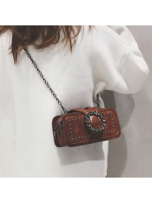 Chic Rivet-Decorated Multi-Compartment Crossbody Bag for Stylish Women