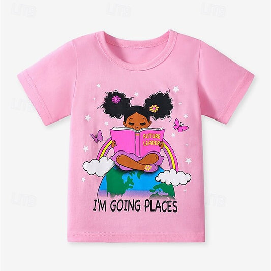 Trendy Graphic School T-Shirt for Girls - in Yellow, Pink & Light Blue (Ages 7-13)