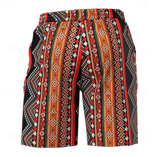 Trendy Geometric Pattern Men's Ethnic Swimming Trunks - Stylish Hawaiian Board Shorts