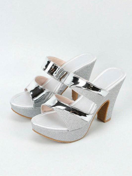 Chic Champagne Color Block High Heel Sandals - Elegant Peep Toe Platform Mules