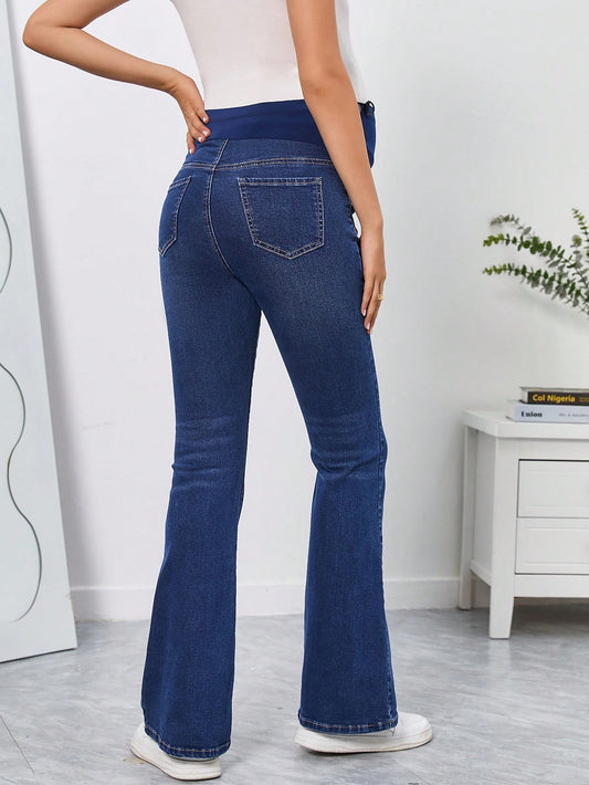 Stylish Comfort: Maternity Wideband Waist Flare Leg Jeans