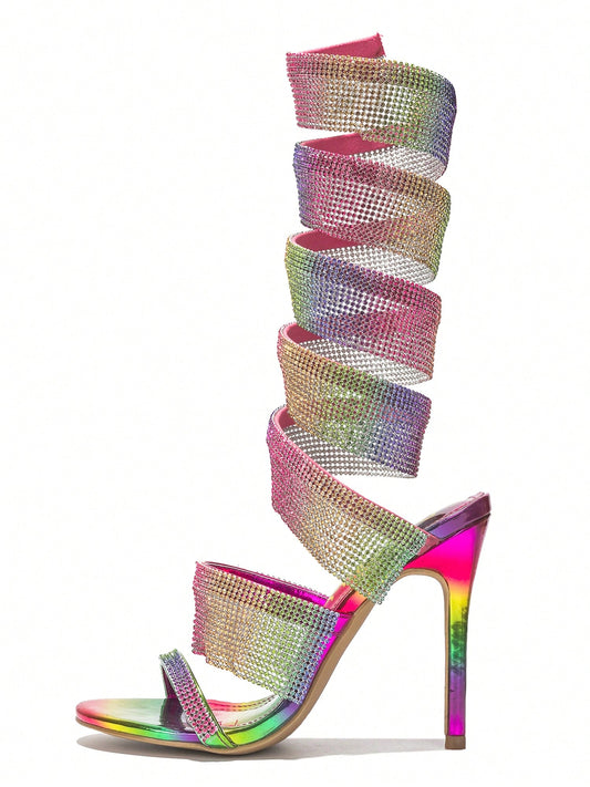 Sparkling Elegance: Cape Robbin Fred Women's Rhinestone Wrap-Up Heels