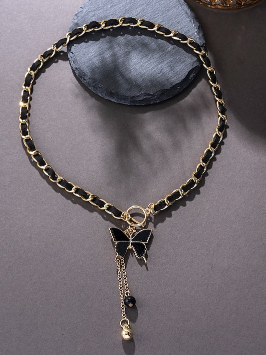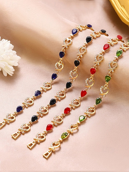 Elegant Valentine's Day Charm: Women's Black and Red Burgundy Alloy Chain Bracelet