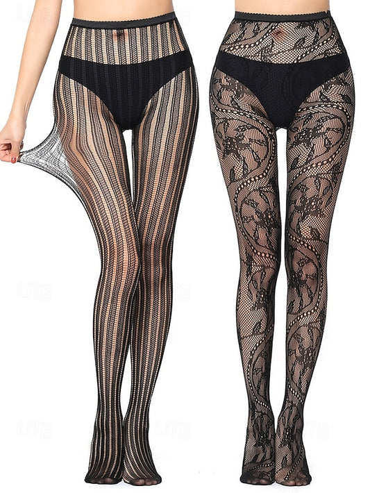 Women's Gothic Lace Patterned Tights - Sheer Fishnet Pantyhose for Cosplay