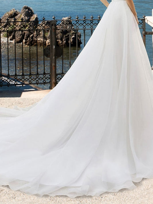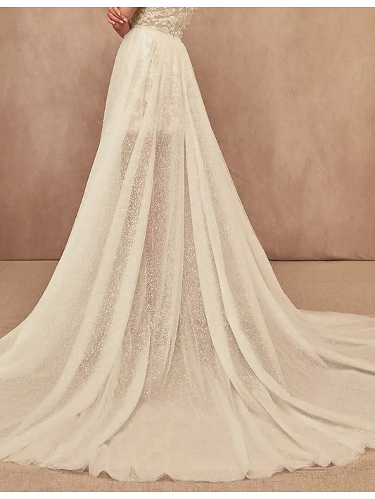 Elegant A-Line Wedding Dress with Organza Overskirts - Bridal Gown Separates