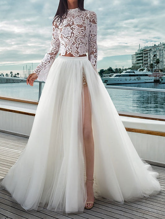 Boho Chic High-Neck Lace Bridal Separates for a Romantic Beach Wedding