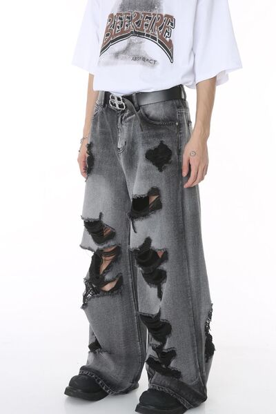 Distressed Wide Leg Jeans with Pockets