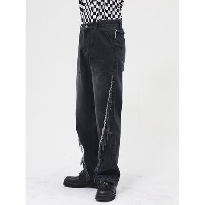 Pocketed Distressed Jeans with Side Zip