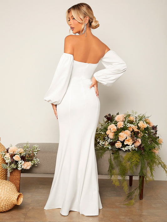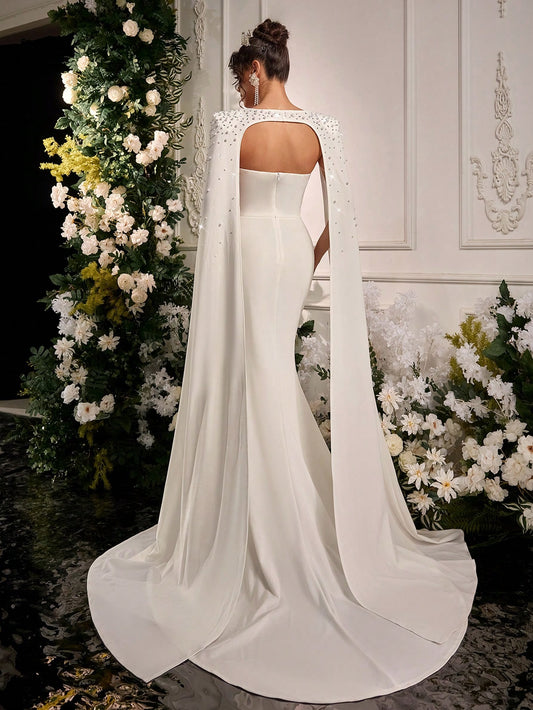 Enchanting Missord Beaded Mermaid Hem Wedding Dress - White Elegance