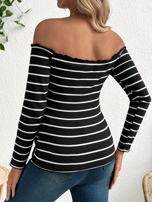 Chic Off-Shoulder Striped T-Shirt for Effortless Style - Perfect for All Seasons!