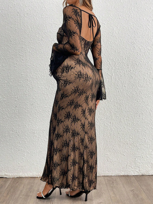 Elegant Lace Bodycon Maternity Dress with Ruffle Hem – Perfect for Baby Showers!