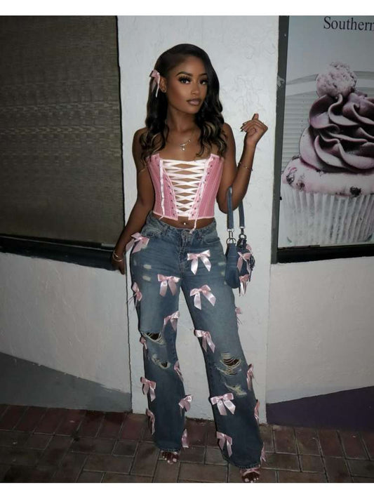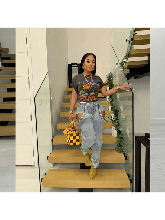 Trendy High-Waisted Distressed Denim Jeans for Effortless Style