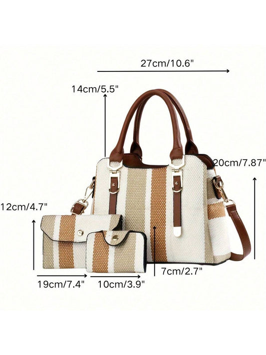 Chic Elegance: Classic 3-Piece Color Contrast Tote Bag Set with Purse & Card Holder